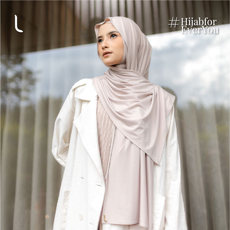 Bergo dengan bahan jersey, yang memiliki karakteristik stretch, adem, nyaman, dan ringan. Detail bergo terdapat pola jahitan dagu yang berfungsi untuk menutup aurat bagia bawah wajah serta menyamarkan bentuk dagu. Terdapat pad tanpa busa dibagian lingkar atas wajah dan plat Elzatta.